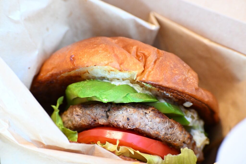 岩国市で本格ハンバーガーを楽しむなら「HACHI-HACHI BURGERS CAFE」。肉厚の粗挽きビーフパティはジューシーで食べごたえがあり、ひと口目から満足感が広がります。